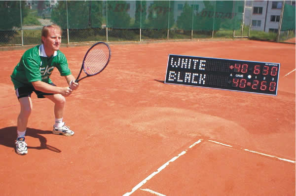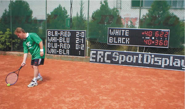 MÉRET: 230 x 65 x 2cm SÚLY: 8 kg JÁTSZMA: 0,15,30,40 SET: 1,2,3 SZÁM: 17cm, vörös, nagy fényerejű KIJELZÉS: szerva, előny TÁPELLÁTÁS: 12V / 2,1A DC VEZÉRLÉS: 5m-es kábellel SZÖVEG: manuális, 2 játékos számára Az eredményjelző egyszerűen felállítható